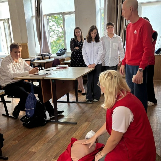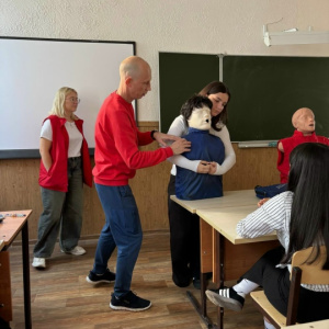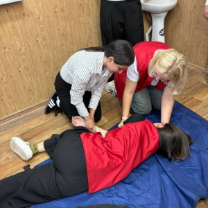 ходе мероприятия участники освоили метод Геймлиха при попадании инородного тела в дыхательные пути, сердечно-легочную реанимацию и технику придания устойчивого бокового положения пострадавшему.