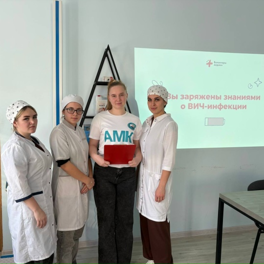 01 декабря 2025 года в рамках акции Всероссийского общественного движения «Волонтеры – медики», волонтерами ГБПОУ «Армавирский медицинский колледж» в рамках акции был проведен квиз «Вместе против ВИЧ». Инициативная группа студентов подготовили и провели увлекательную квиз-игру «Вместе против ВИЧ», в игре было 3 раунда с разными уровнями сложности, в игре принимали участие три команды « Сердца», «Вирусики» и «Красная лента». С не большим отрывом победила команда «Красная лента». Ребята закрепили свои знания по ВИЧ инфекции и узнали новую информацию.